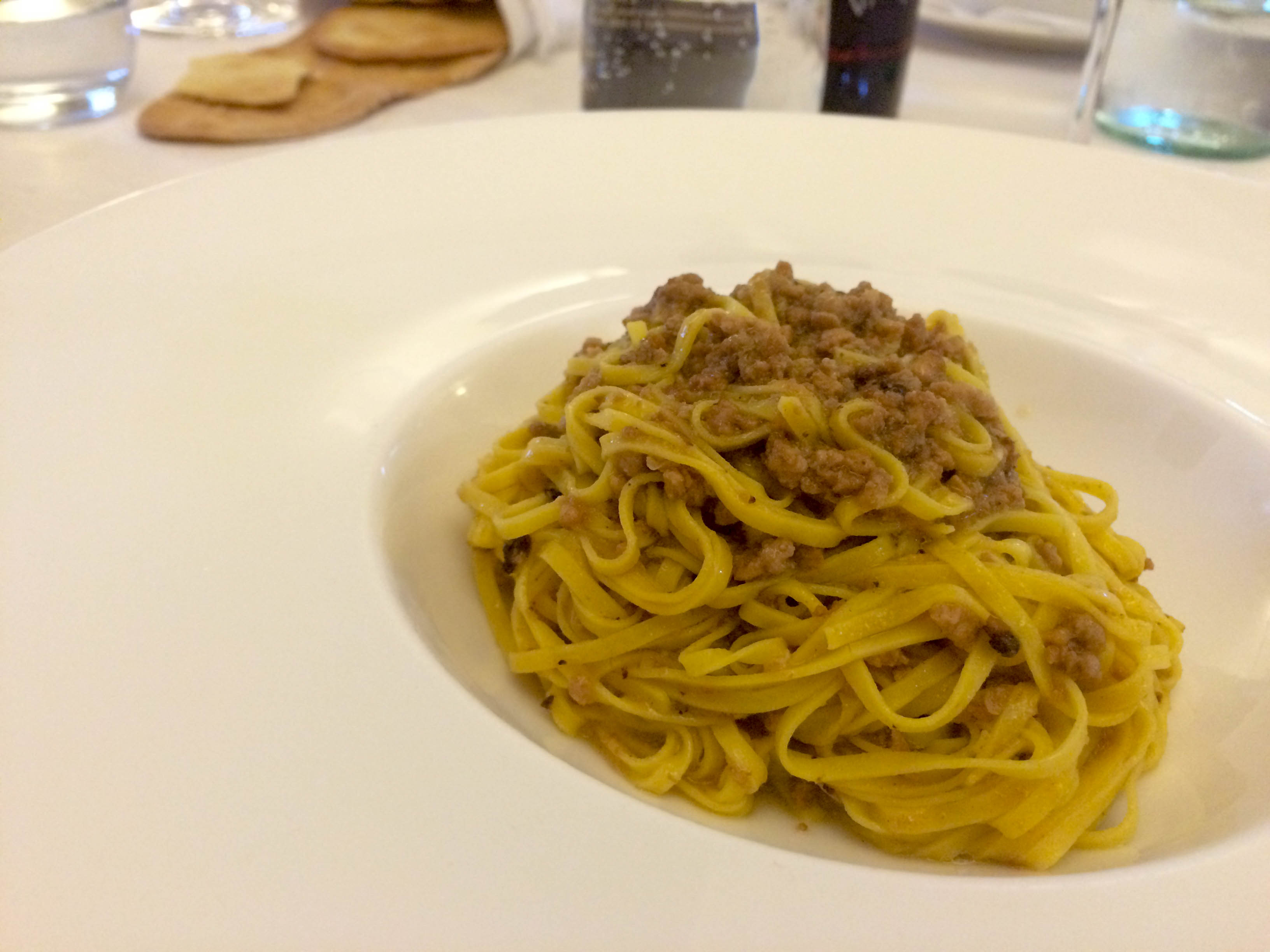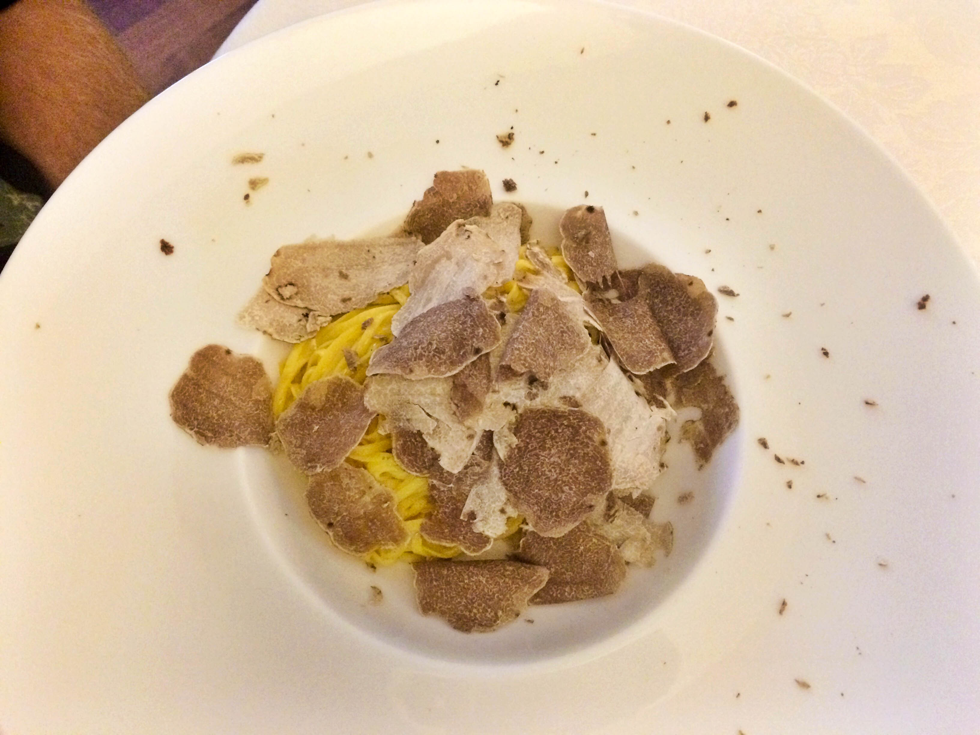 Home of the slow food movement, white truffles and Barolo – this place screams let’s NEVER leave. Yet, we were chasing the sun down south so had to move pretty quickly through this region. We did stop for lunch at Trattoria I Bologna to get a fix of all the good stuff. We could see Nona making our pasta to order, we tried a donkey chop – not too bad and veal tartare. The boss brought out his pride and joy – a white truffle wrapped in tissues for us to smell – and just like that Wax had a plate of pasta with freshly shaved truffles.