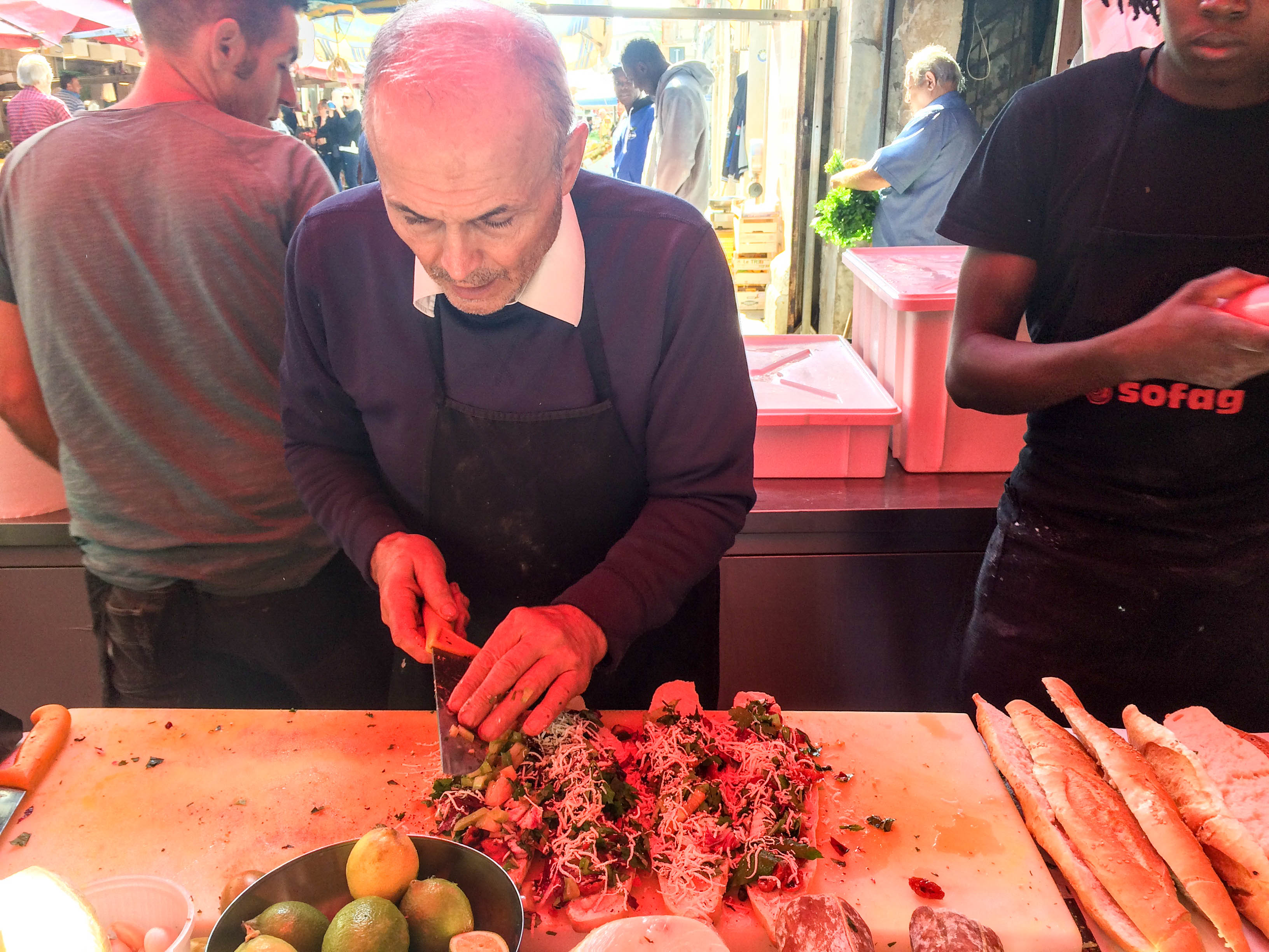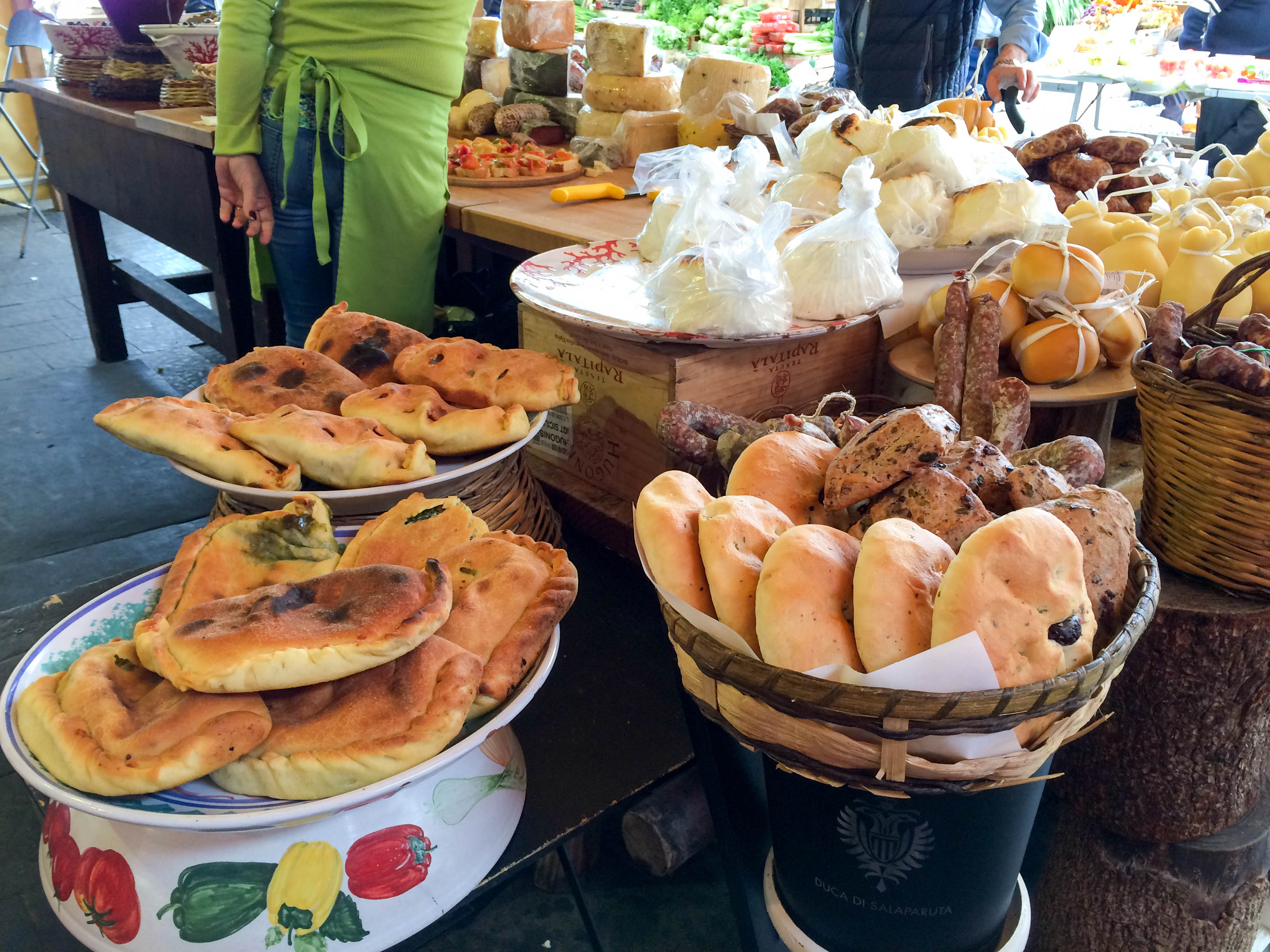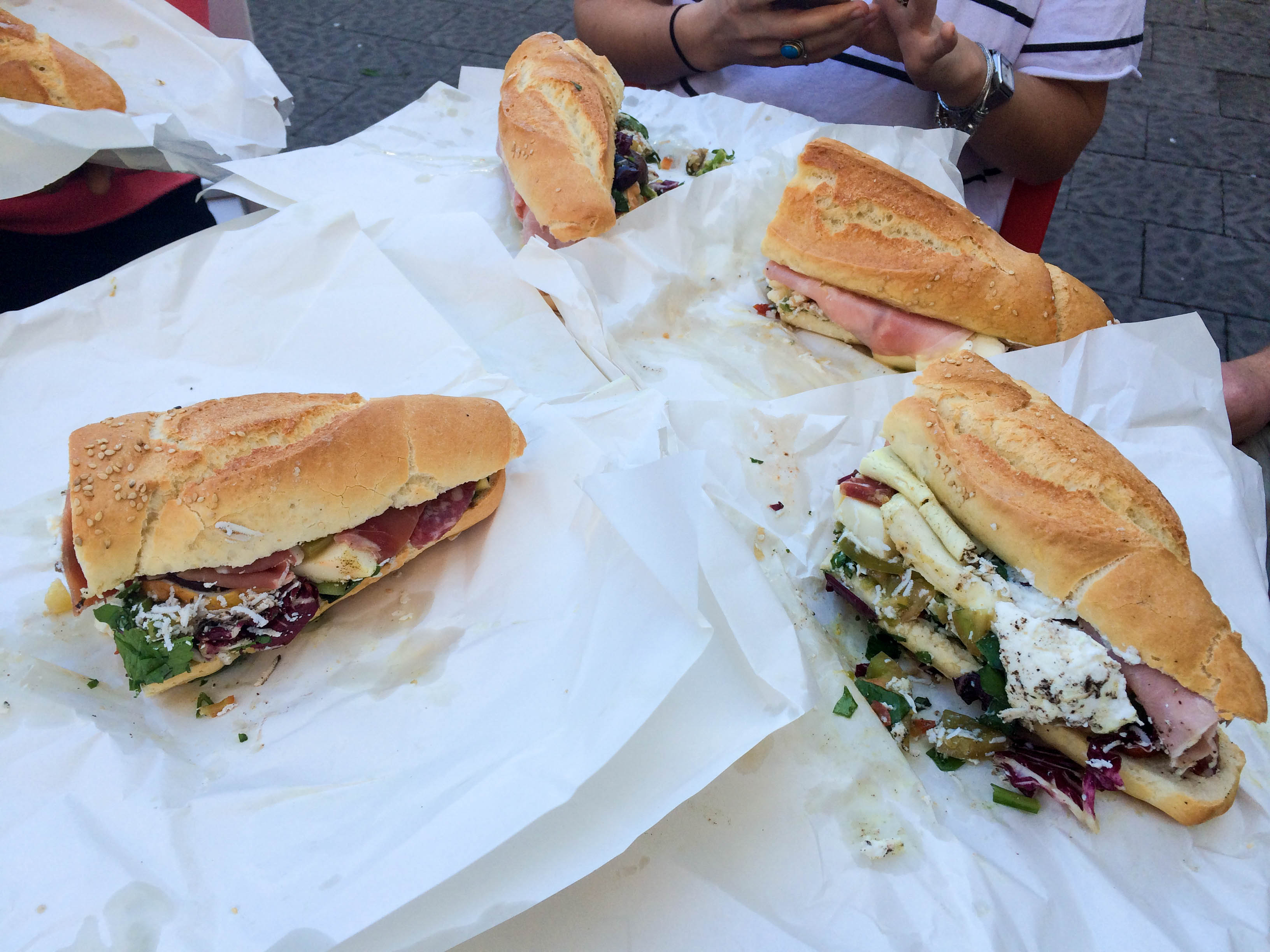 This island is the biggest region in Italy and one of the greatest places to explore. Nestled between Italy and Northern Africa it’s a treasure trove of flavours. We started in Taormina with severe storms for Chase’s birthday weekend – which is perfection when you’re staying at a 5* hotel with the most delicious breakfast spread and unlimited prosecco. From here we went to Siracusa, a fantastic little town on the sea in the south-east. The market here is one of the most spectacular we have seen and so cheap. Wax was in his element. It was here we discovered the greatest sandwich maker/entertainer that ever lived. Granted, it took at least 30 tantalising minutes to get our sandwich made, but the entertainment this Italian sandwich king gave us was well worth the wait. During the process he was feeding us cheeses, meats, olives and pickled vegetables – by the time we got our hands on the giant sanga I was already stuffed. The sandwich was made up of herbs that had been chopped after he had smeared a clove of garlic on the board, fresh olives, ricotta, honey, sundried tomatoes, scamorza, smoked mozzarella, ham, mortadella, radicchio, pickled eggplant and a whole lot of love. All this for 5€. Absolute bargain.