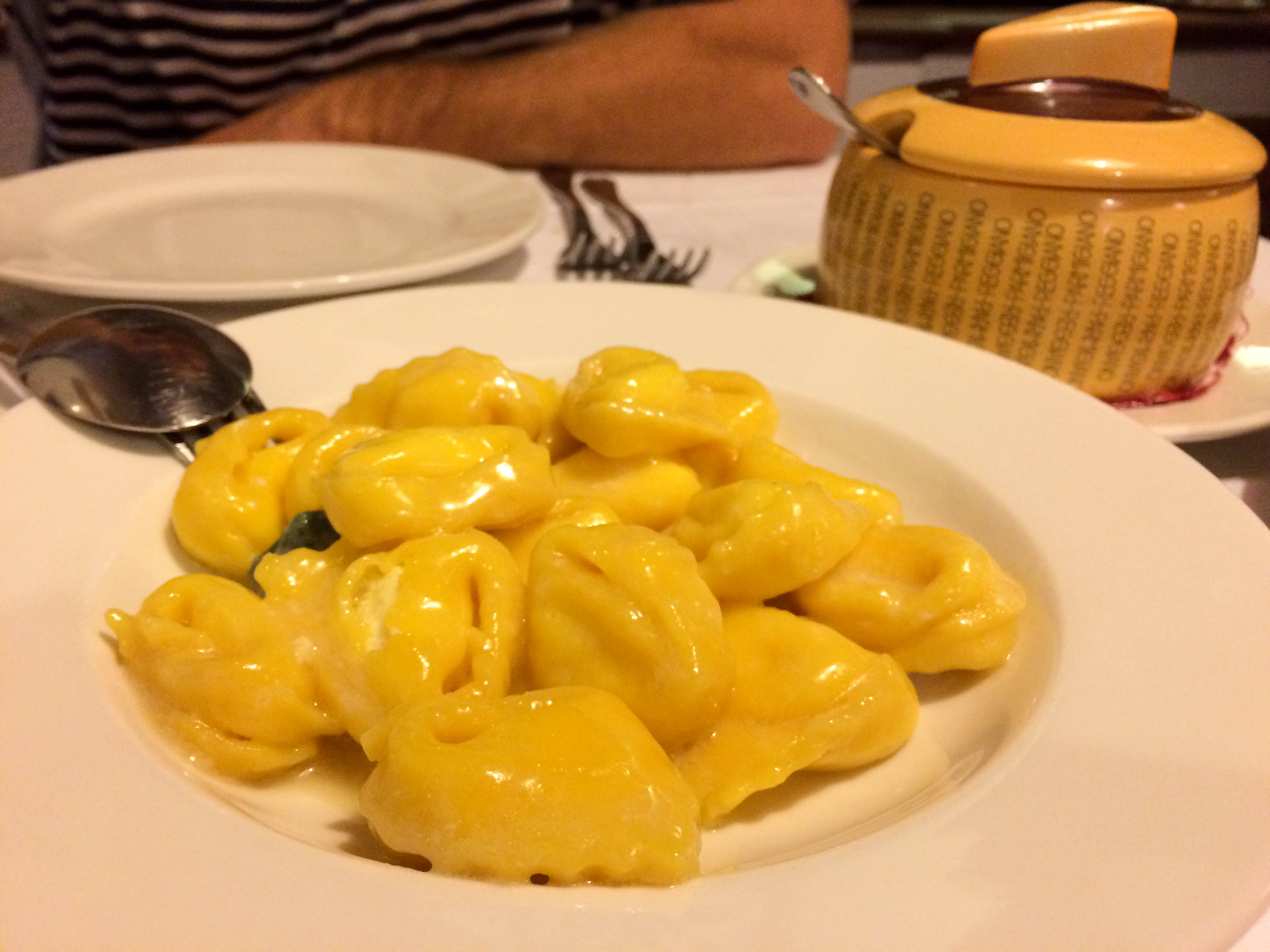 Just when we thought Italy couldn’t tempt us any further we arrived in Emilia Romagna. The home of Mortadella, Culatello, Prosciutto di Parma, Parmigiana Reggiano, balsamic vinegar of Modena, lambrusco, the best restaurant in the world and many other gastronomic delights. First stop Bologna – a bustling student city. The markets and the Salumerias (cured meat shops) here kept us well occupied when we weren’t halfway through a bottle of fizzy red wine. Lambrusco often conjures up foul images of a sickly sweet, fizzy red wine to most and it did for us to begin with. This was different. It was delicious, refreshing and cheap. One of the specialities of the region is Tortellini en Brodo – kind of like chicken noodle soup, but instead of noodles there are tiny tortellini filled with ham, mortadella and veal. The soup is then garnished with a mountain of fresh Parmigiana Reggiano – it’s fantastic. The No. 1 rated restaurant in the world, Osteria Francescana is in nearby Modena and we had a long awaited (3 months) lunch date there. A late celebration of Chase’s birthday and well, another fine meal. We caught the train to Modena a bit early and had a wander round this beautiful city to make some room for lunch. It was out of this world good. Every. Single. Course. was so special and perfectly executed. The service was insanely cohesive. The guys and girls there are on top of the game in every way. It was a lunch that will be remembered forever. We rolled out of there overly satisfied and for a time, not eager to eat anything else.