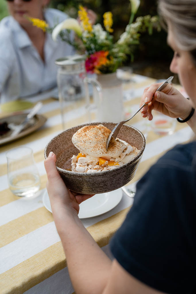 Meringue, orange, cream + coconut sugar GF