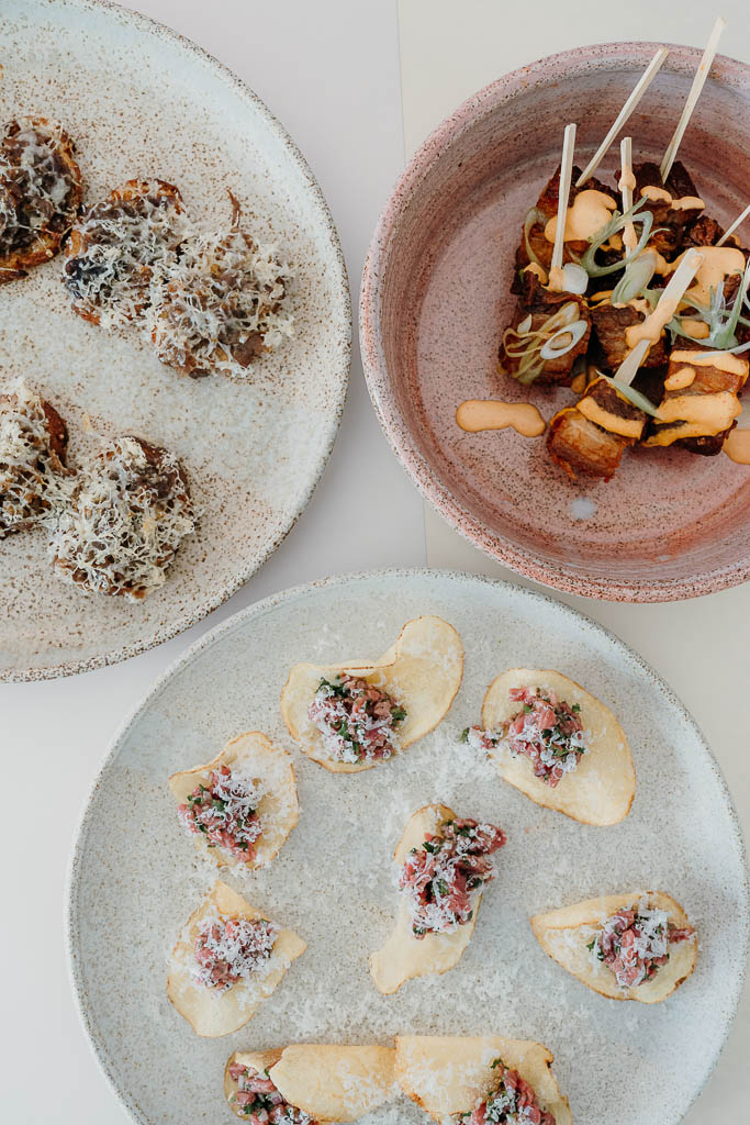 Beef tartare, red onion, tarragon, Parmigiano Reggiano + potato GF
