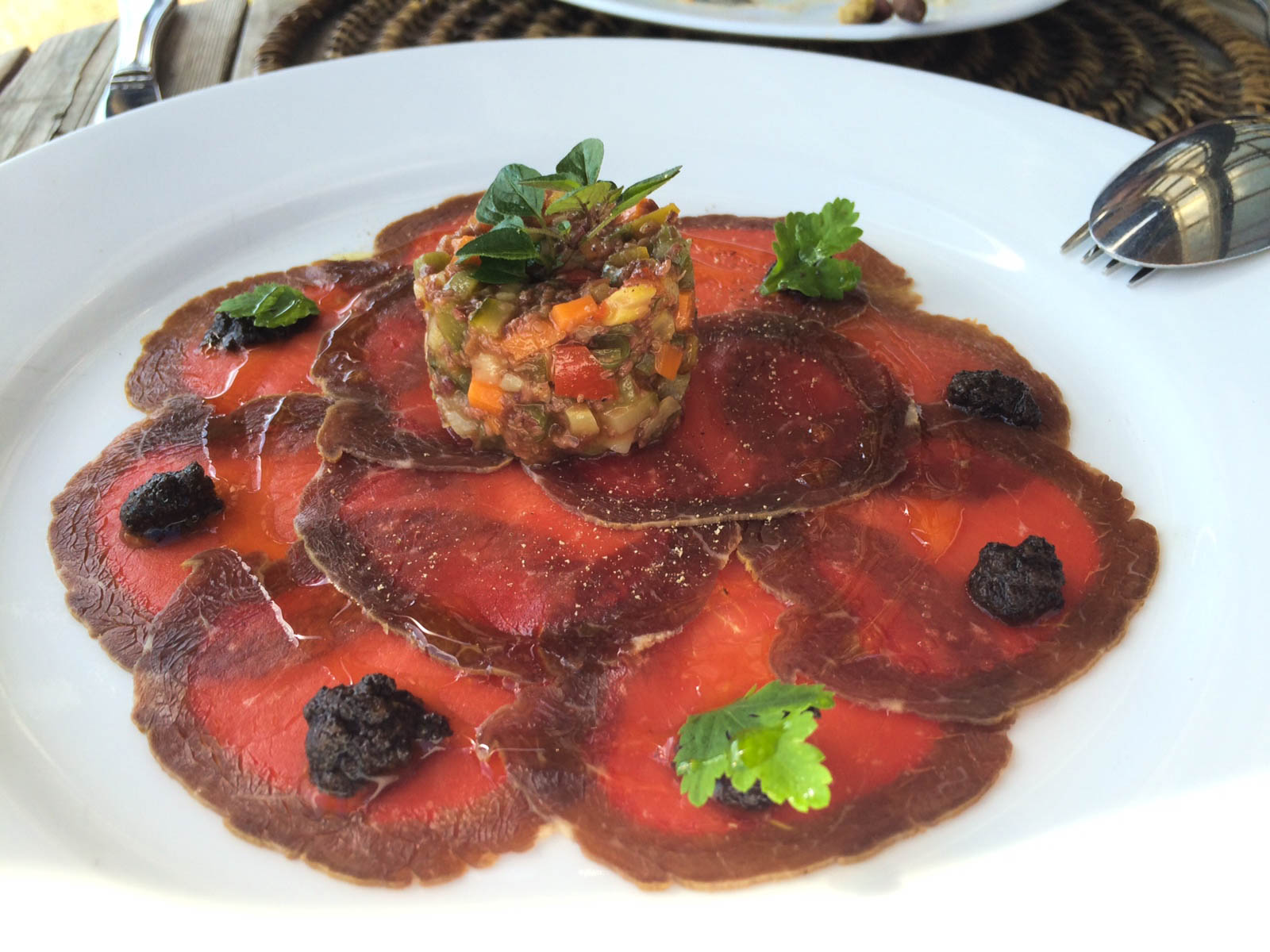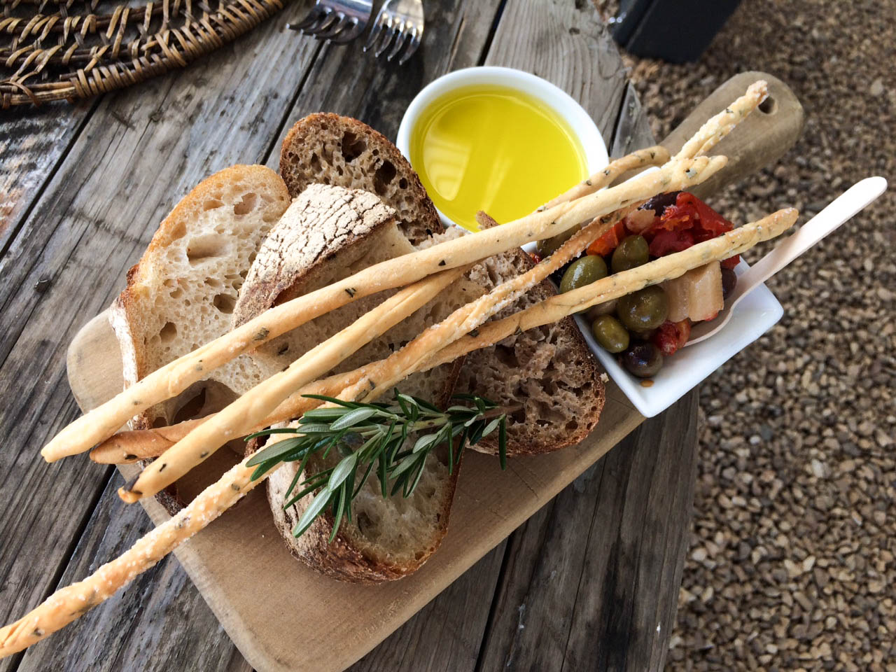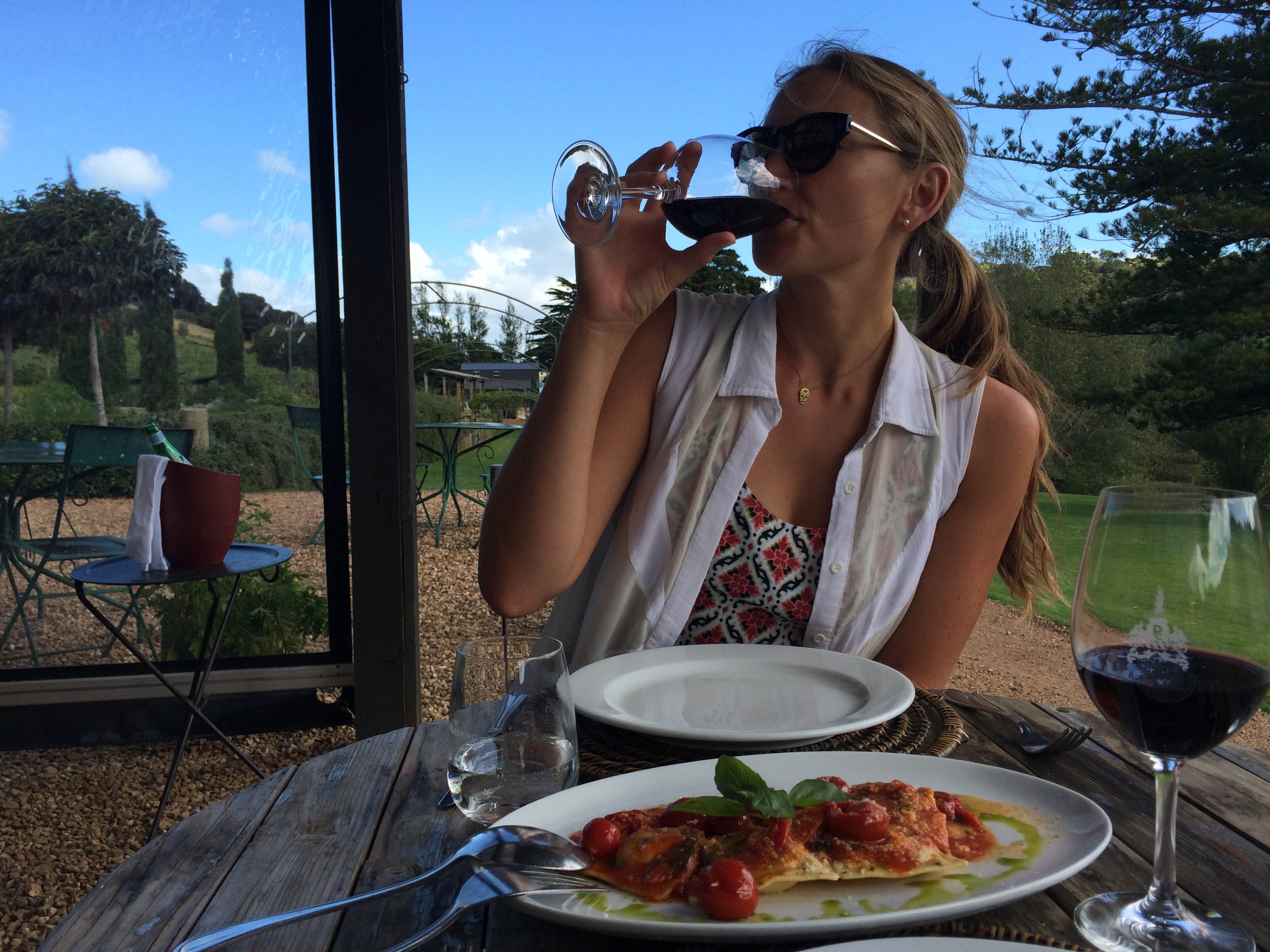 Jesse had organised a sweet pad for our stay at a place called Taraire Lodge, in Little Oneroa. It was only a 10 minute walk to the beach, the bus stop and the centre of Oneroa. Our first night was spent in a bar watching the world cup cricket final and what a win it was! The following day we decided to check out this Italian place that our mate had recommended – Poderi Crisci. And oh WOW. We were blown away by this little slice of Italy right here in NZ. Everything we ate was so fresh and tasty, the service was exceptional and friendly, the wine was delicious and the location stunning. We had a great afternoon here and it was a definite highlight of the trip. Over the next couple of day we ate at The Oyster Inn and Te Motu, they were both good but had nothing on Poderi Crisci.